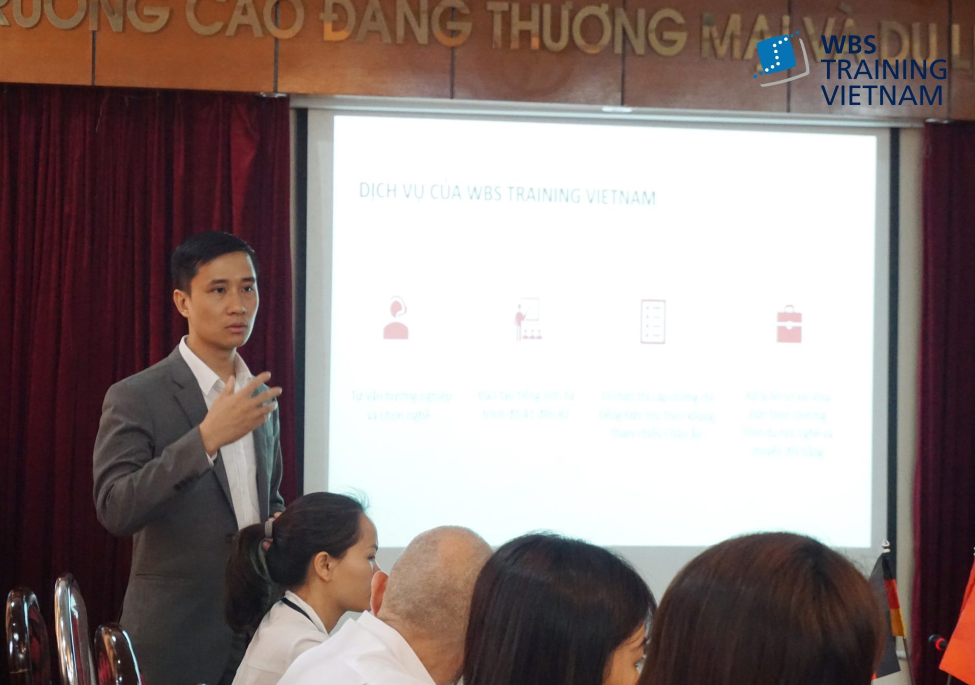 Đặc biệt trong buổi làm việc Giám đốc Nguyễn Ngọc Vinh trao đổi chặt chẽ về chương trình hợp tác giữa công ty với Trường Cao đẳng Thương mại và Du lịch Hà Nội trong thời gian tới về các nội dung: Truyền thông những nghề công ty đang kết nối đào tạo với Tập đoàn WBS tới các sinh viên của nhà trường; Hỗ trợ các trương trình giảng dạy tiếng Đức cho sinh viên tại trường; Tiến hành các chương trình giao lưu văn hóa Đức – Việt với sinh viên để các em có điều kiện tiếp cận, hiểu hơn về văn hóa Đức, các Chương trình du học nghề tại WBS, chương trình chuyển đổi bằng quốc tế của Đức,…