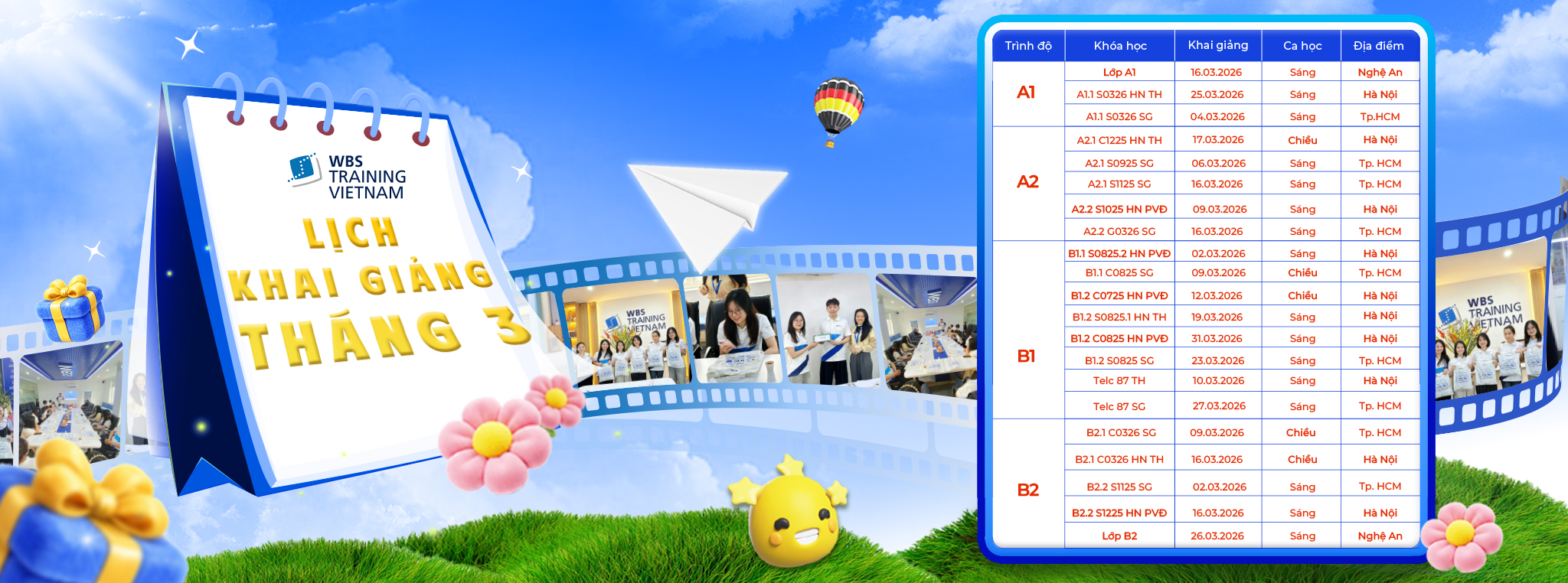 LỊCH KHAI GIẢNG THÁNG 3 NĂM 2026